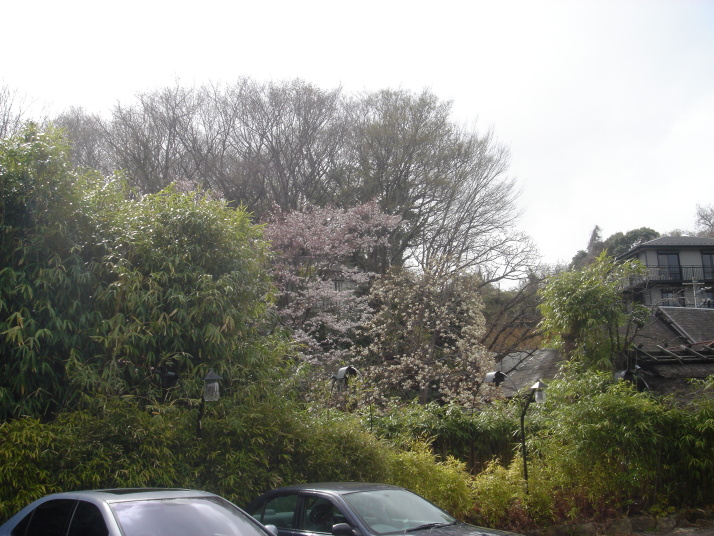 ちょうど、駐車場の桜が咲いていました。